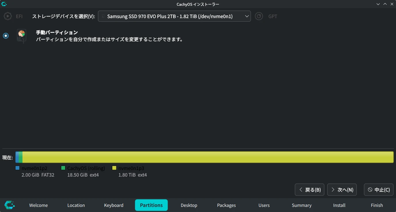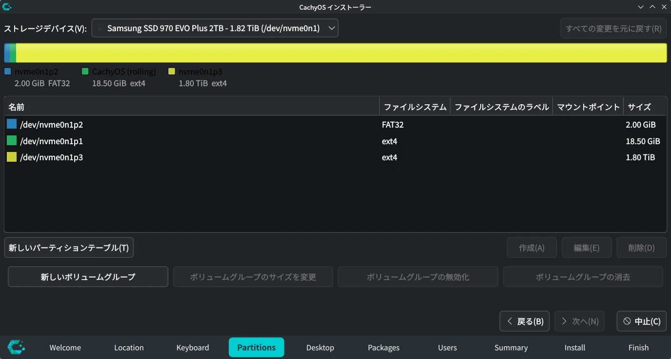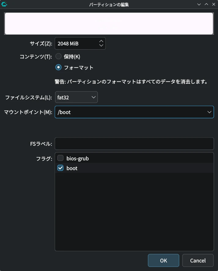 | パーティション | サイズ | フォーマット | ファイルシステム | フラグ |