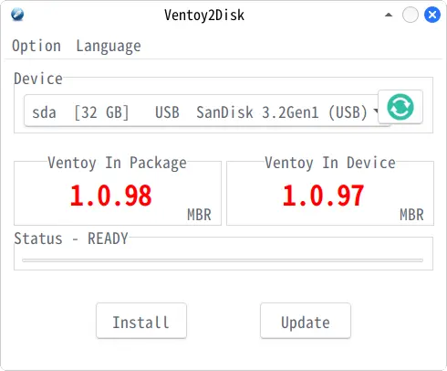 USBメモリを差し込んで Ventoy のインストーラーを起動。