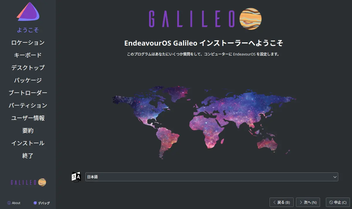 「日本語」が選択されているのを確認して「次へ」をクリック。