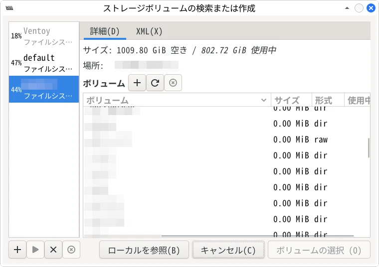 作成されたストレージファイルを選択