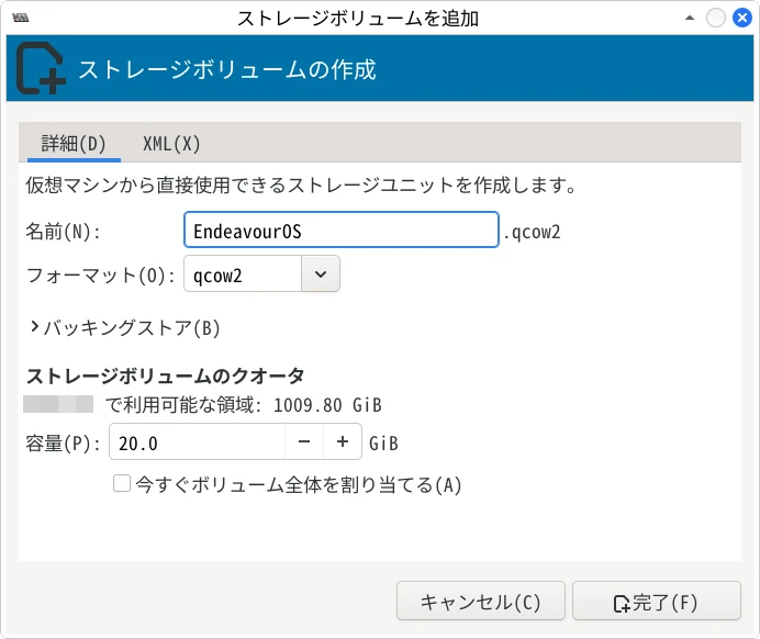 仮想マシンのストレージを作成